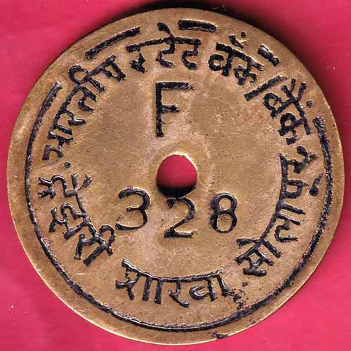 BANK TOKEN : STATE BANK OF INDIA SOLAPUR NO 328 – S1947