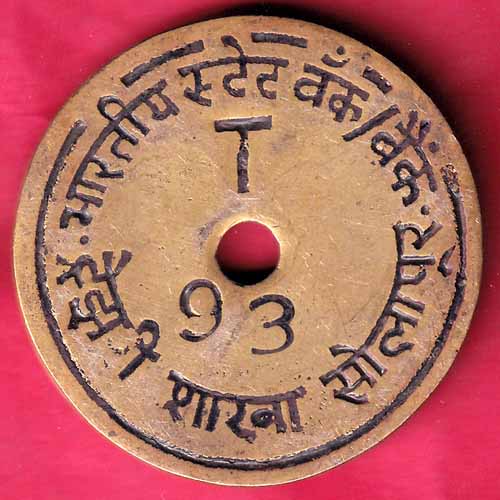 BANK TOKEN : STATE BANK OF INDIA SOLAPUR NO 93 – S1938