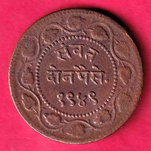 BARODA STATE 1949 SAYAJI RAO GAYAKWAD TWO PAISA COPPER COIN–@HUB1746