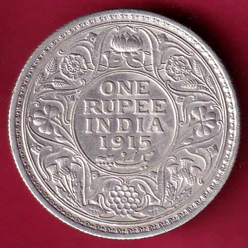 British India 1915 George V One Rupee Silver Coin :- S2297