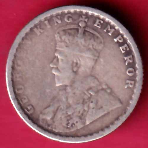 British India 1919 George V 1/4 Rupee Silver Coin - S1572