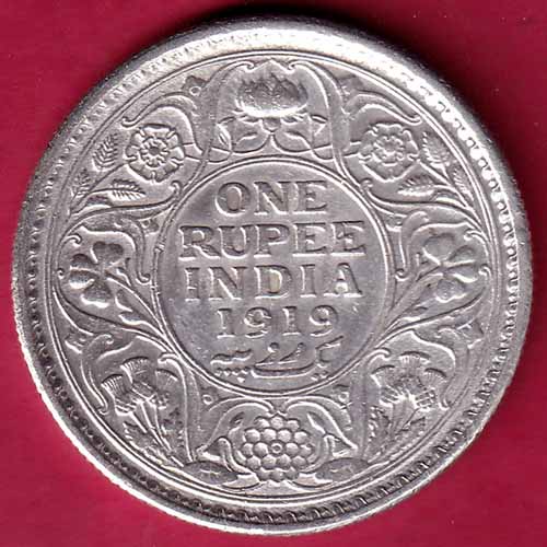 British India 1919 George V One Rupee Silver Coin :- S2330