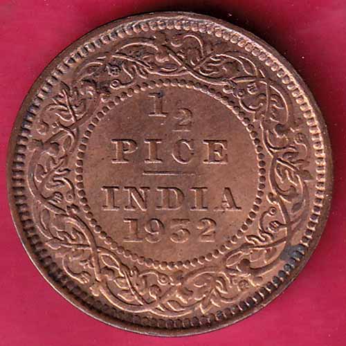 BRITISH INDIA 1932 GEORGE V 1/2 PICE COPPER COIN:- NS6