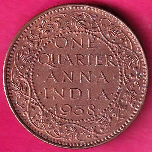 BRITISH INDIA 1938 GEORGE VI ONE QUARTER ANNA COPPER COIN-OO552