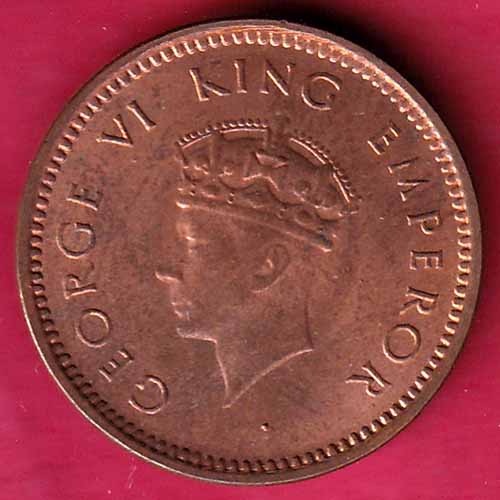 BRITISH INDIA 1939 GEORGE VI 1/2 PICE COPPER COIN – S1059
