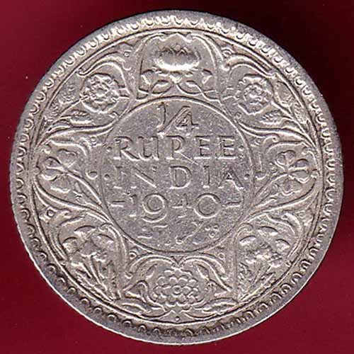 British India 1940 Bombay mint George vi 1/4 Rupee Silver Coin - S1576