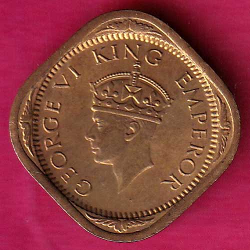 BRITISH INDIA 1942 GEORGE VI 1/2 ANNA COIN–@HUB1970