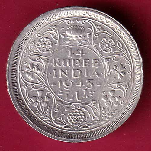 BRITISH INDIA 1943 BOMBAY MINT GEORGE VI 1/4 RUPEE BEAUTIFUL SILVER COIN – S2078