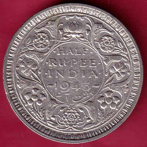 British India 1943 Bombay Mint George VI Half Rupee Silver Coin :- S1190