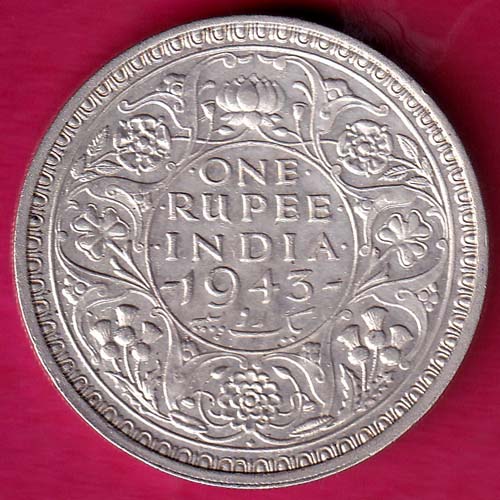 BRITISH INDIA 1943 BOMBAY MINT GEORGE VI ONE RUPEE BEAUTIFUL SILVER COIN :- OO140