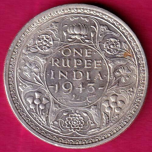 BRITISH INDIA 1943 BOMBAY MINT GEORGE VI ONE RUPEE BEAUTIFUL SILVER COIN :- OO162