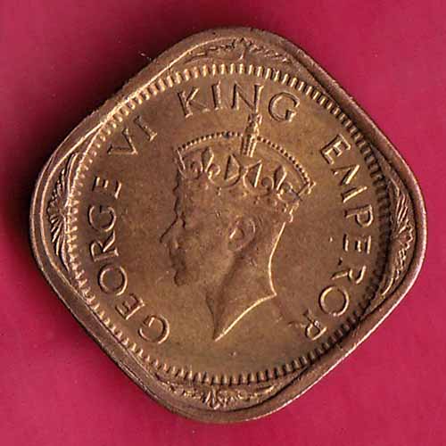 BRITISH INDIA 1944 GEORGE VI 1/2 ANNA COIN–@HUB1516