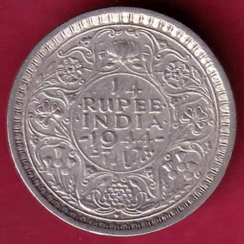 British India 1944 George Vi 1/4 Rupee Rare Silver coin - S1370