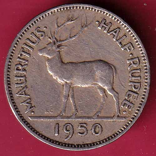 British India King George The Sixth Mauritius 1950 Half Rupee – S1920