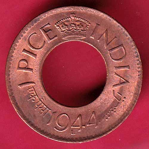 British india king george vi 1944 LAHORE MINT one pice copper coin –@HUB1628
