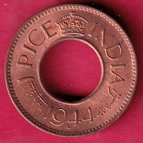 British india king george vi 1944 LAHORE MINT one pice copper coin :- S2328