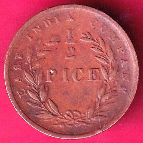 ESAT INDIA COMPANY 1853 1/2 PICE COPPER COIN–@HUB2019