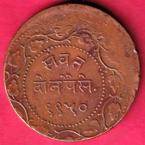 "Error" Baroda State Sayaji Rao 1950 two Paisa - S1555