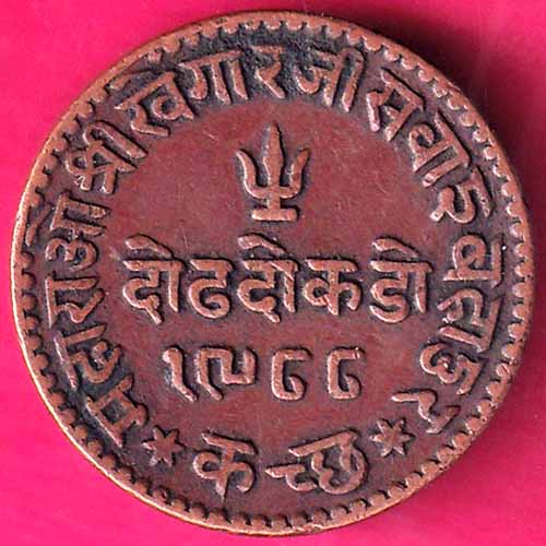 KUTCH STATE AD 1931 / VS 1988 SHREE KHENGARJI ONE & HALF DOKDO RARE COIN :- OO524