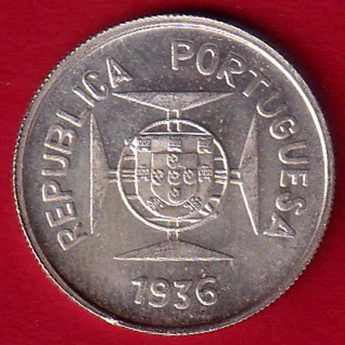 Portuguese India 1936 1/2 rupia beautiful silver coin - oo5384