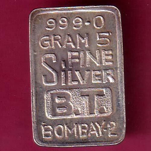 SILVER BAR W – 5.02 gm: “BT” FINE SILVER KALASH MARK– OO3931