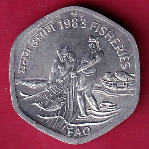 UNC REPUBLIC INDIA 1983 FISHERIES TWENTY PAISA COIN – S1957