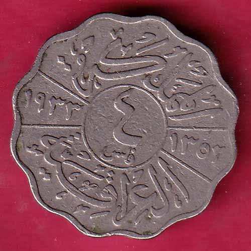 WORLD COIN 1933 – 1352 Faisal I 4 Fils RARE COIN – S2046