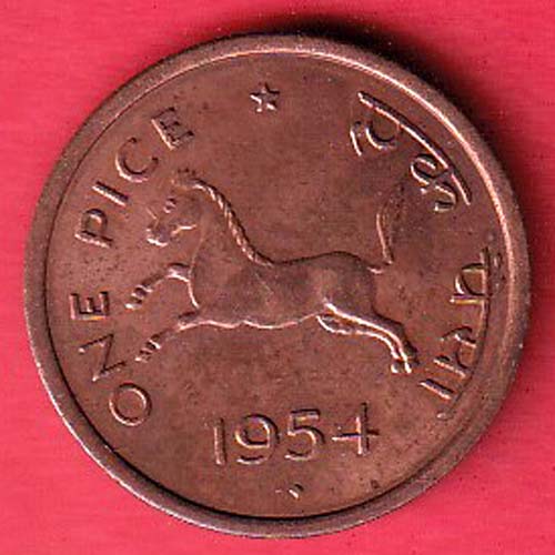 "AUNC" GOVERNMENT OF INDIA 1954 ONE PICE COPPER COIN :- OO3942