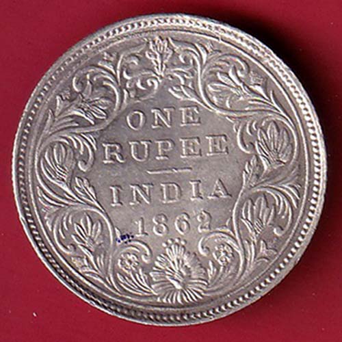 BRITISH INDIA “0/4 DOTS ” 1862 VICTORIA QUEEN ONE RUPEE BEAUTIFUL SILVER COIN :- OO4384