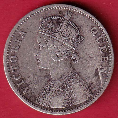 BRITISH INDIA “1/4 DOTS ” 1875 VICTORIA QUEEN ONE RUPEE BEAUTIFUL SILVER COIN– OO4491