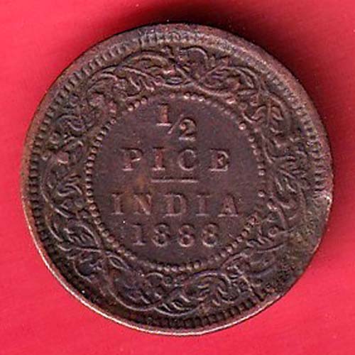 BRITISH INDIA 1888 GEORGRE VI KING 1/2 PICE COPPER COIN - oo4030