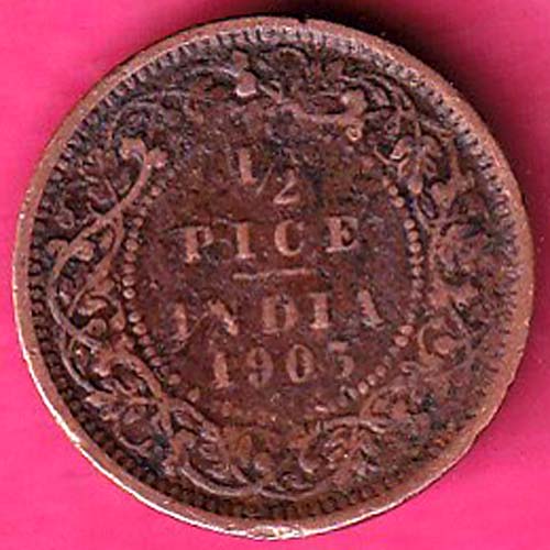 British India 1903 Edward Vii King & Emperor 1/2 Pice Copper coin –@HUB4592