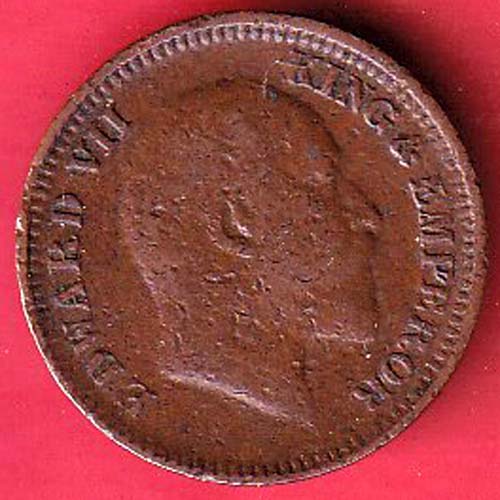 BRITISH INDIA 1906 EDWARD VII 1/2 PICE COPPER COIN –@HUB5607