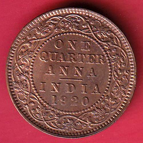 british indiA 1920 GEORGE V one quarter anna COPPER COIN –oo4099