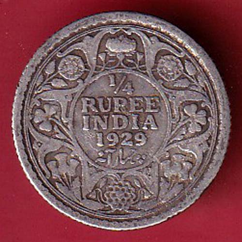 british india 1929 george v 1/4 rupee silver coin –oo4074