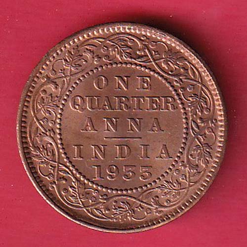 British India 1933 George ONE QUARTER ANNA COPPER coin – oo5535