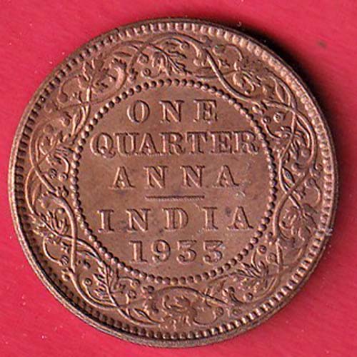 BRITISH INDIA 1933 ONE QURTER ANNA GEORGE VI COPPER COIN- oo5558