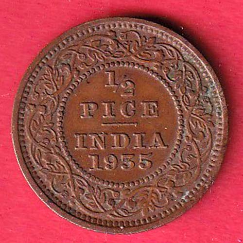 BRITISH INDIA 1935 GEORGE V 1/2 PICE COIN– OO5018