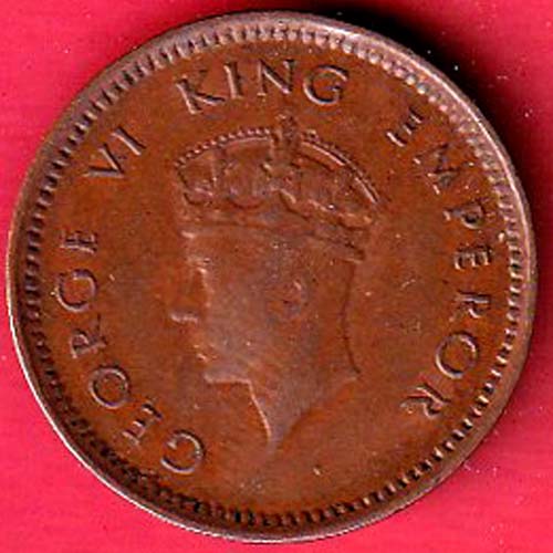 BRITISH INDIA 1939 GEORGRE VI KING 1/2 PICE COPPER COIN :- @HUB6029