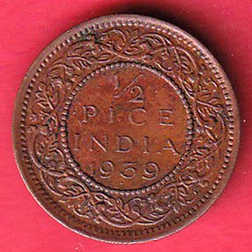 BRITISH INDIA 1939 GEORGRE VI KING 1/2 PICE COPPER COIN:- OO4280