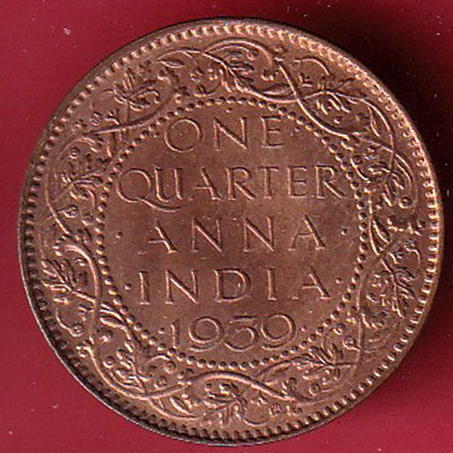 BRITISH INDIA 1939 ONE QURTER ANNA GEORGE VI COPPER COIN – oo5136