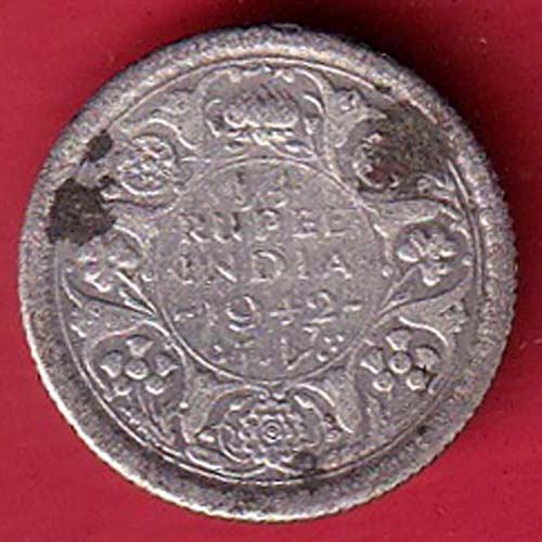 BRITISH INDIA 1942 GEORGE VI 1/4 RUPEE BEAUTIFUL SILVER :- oo4080
