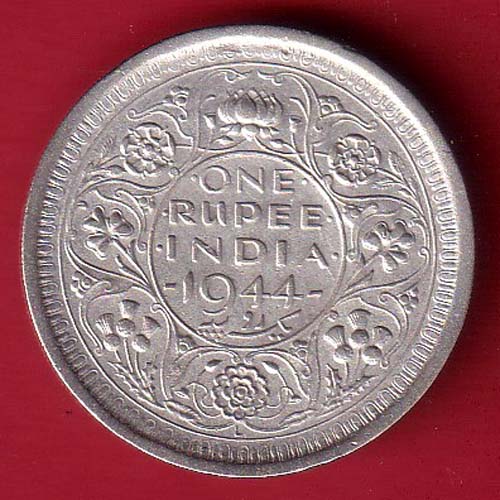 British India 1944 Bombay Mint "large 9" George VI One Rupee Silver Coin- oo4035