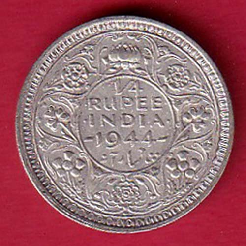 British India 1944 George VI King 1/4 rupee silver coin:- OO4282