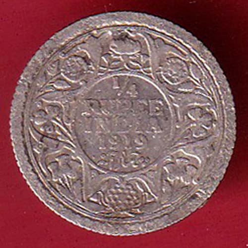 British India BOMBAY MINT 1919 George V 1/4 Rupee Silver coin :- OO4390