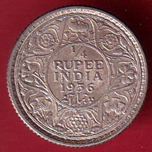 British India king geoge v 1936 1/4 Rupee silver coin– oo5700
