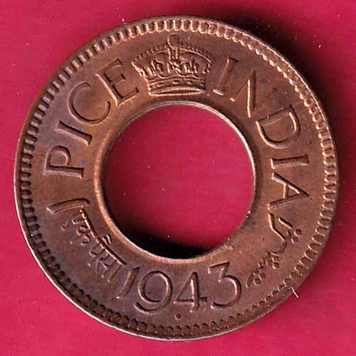 British india king george vi 1943 one pice beautiful copper coin –@HUB1468