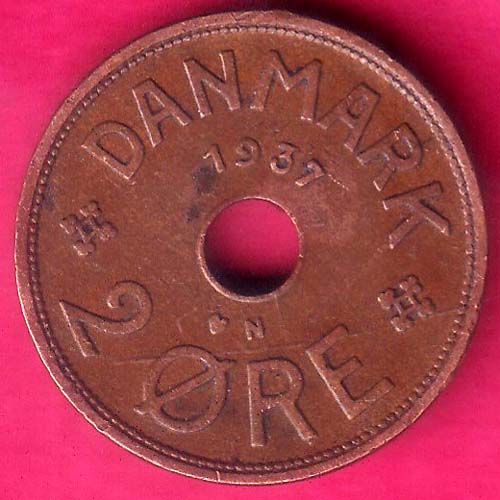 Danmark 1937 2 Ore Konge Af X 60 Rare Coin–@HUB5703