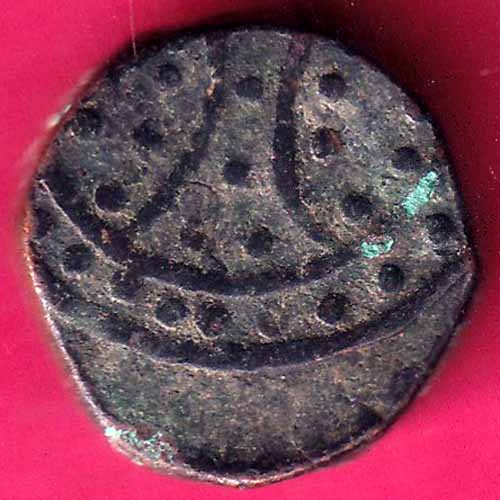Hyderabad-Shorapur Feudatory Trishula flanked by two other objects. Bahiri symbol.1 Paisa Rare Copper Coin –@HUB5919
