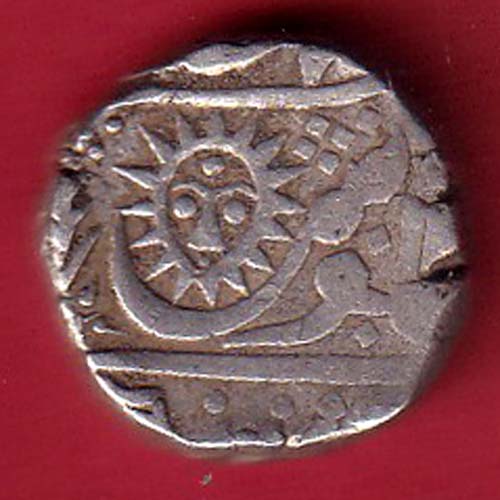 INDORE STATE SUN FACE INO SHAH ALAM II MALHAR RAO ONE RUPEE COIN:-oo5522